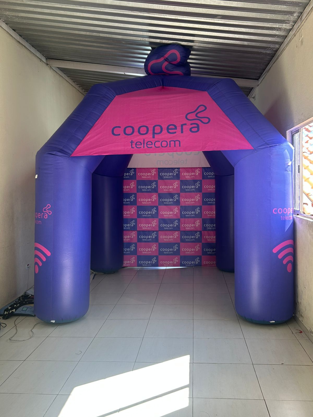 Tendas e stands infláveis para personalização. Utilizada em eventos corporativos.